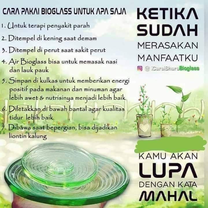 Saya pakai kalung biopendant,sy suling bioglass setiap hari lebih dari 20x, sy minum glucola Stevia 1xsehari, sy rutin&rajin minum air bioglass nya,siang-malam sy tempel&sinari bioglassnya di perut saat tidur malam..😊
